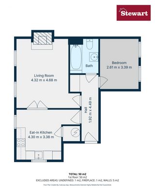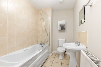 The bedroom is a well-proportioned double with natural light and ample room to accommodate freestanding wardrobes or further storage solutions. The bathroom is fitted with WC, WHB and a full bath with shower attachment.